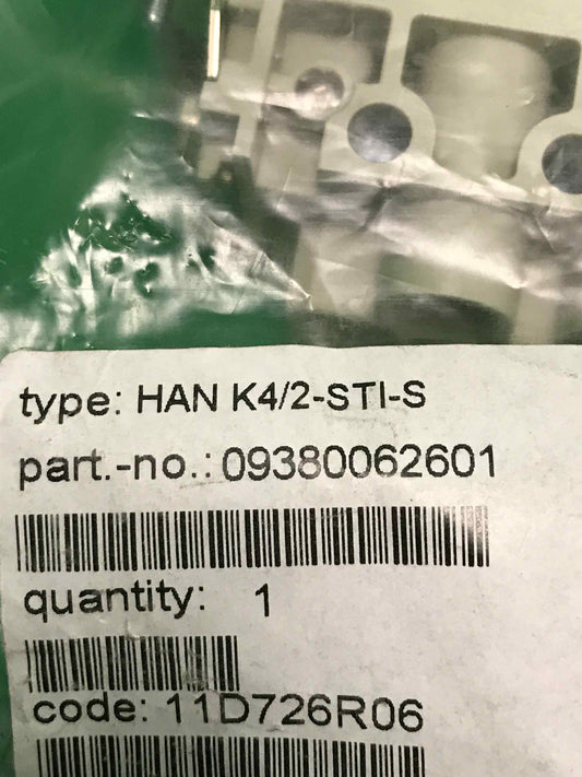 New in its original packagingRegular price €90,00 Exc VATRegular priceUnit price / perSale price €90,00HARTING HAN K4 2-STI-S HANK42STIS HAN K4/2-STI-S
