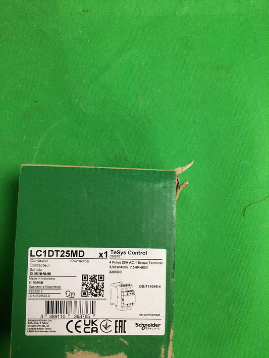 New in its original packagingRegular price €84,22 Exc VATRegular priceUnit price / perSale price €84,22Schneider Electric-LC1DT25MD-TeSys LC1D - contacteur - 4P - AC-1 440V - 25A - bobine 220Vcc
