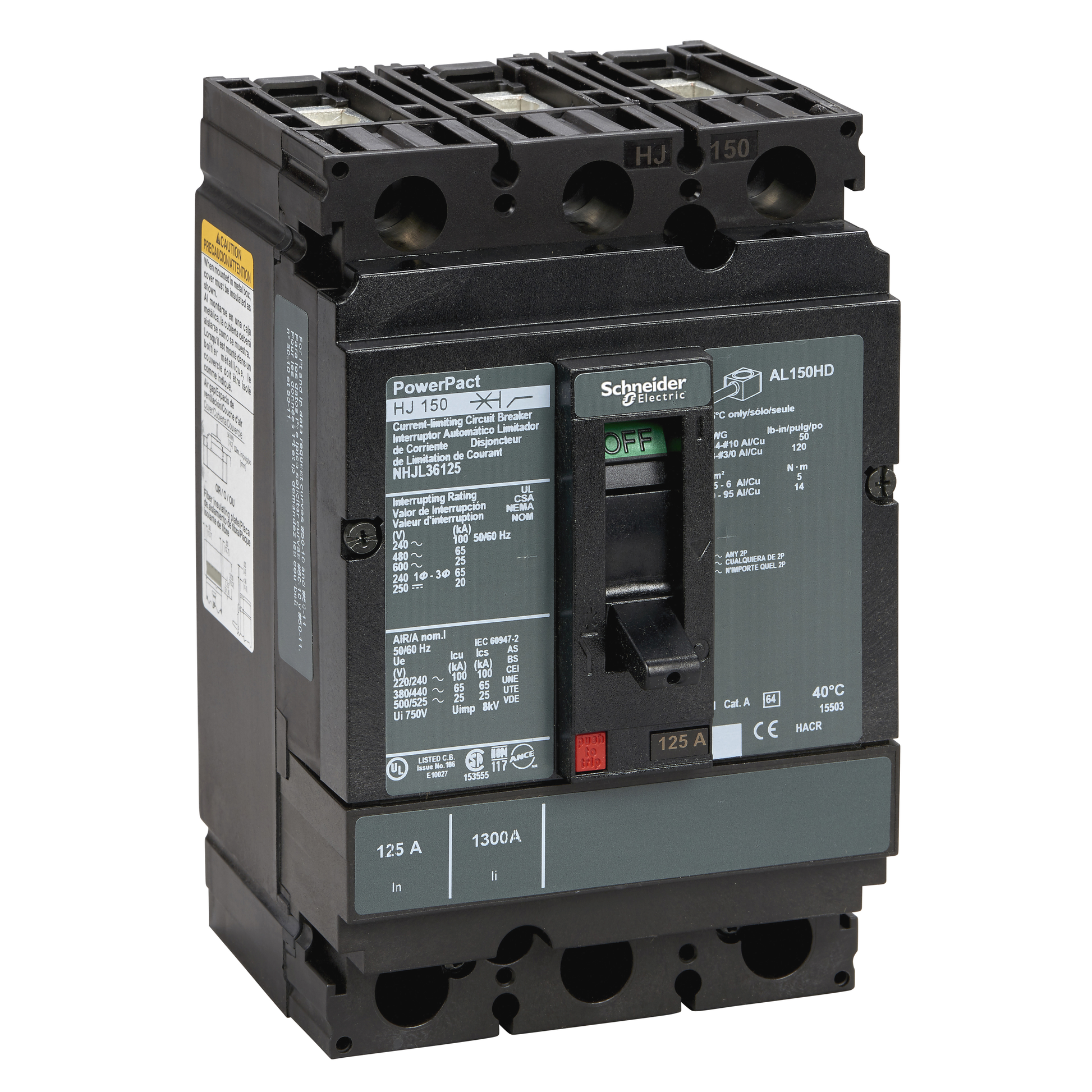 Schneider Electric-NHJL36125-PowerPact H - disjoncteur 150A - avec bornes - 65kA - TMD - 125A - 3P 3d