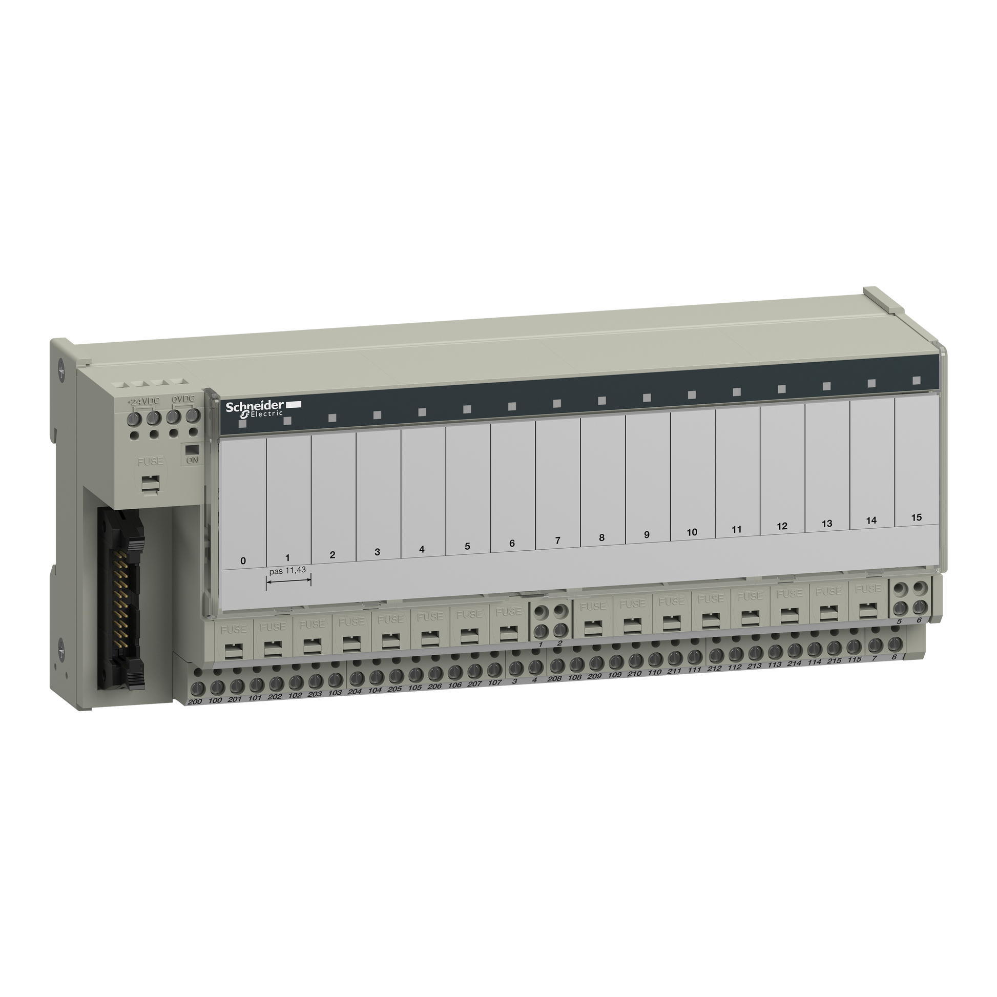 Schneider Electric-ABE7P16T214-Telfast ABE7 - embase pour relais - embrochable - 16 voies - fus. - relais 10mm